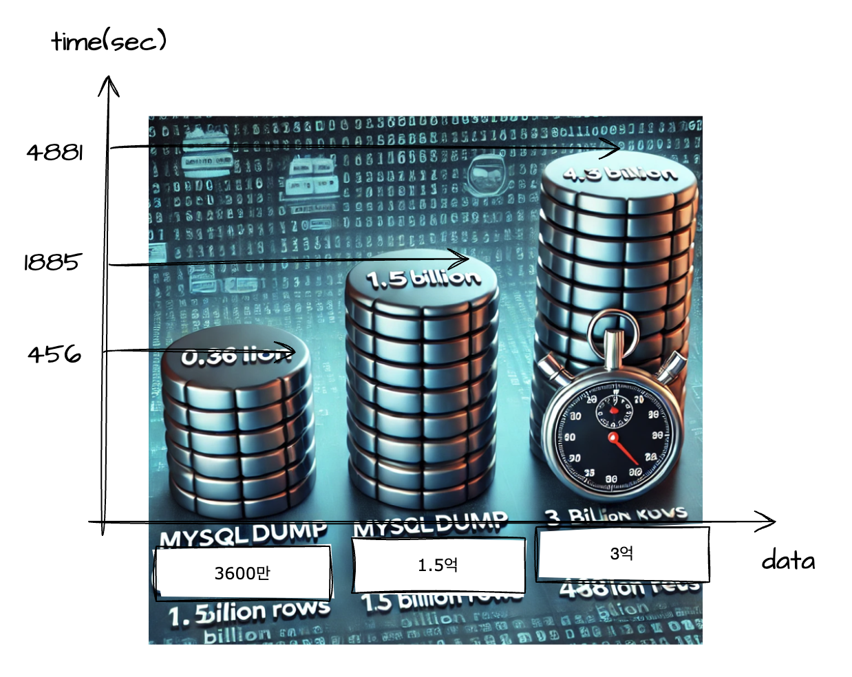 - 최초 풀백업 데이터량은 약 5억건이다.