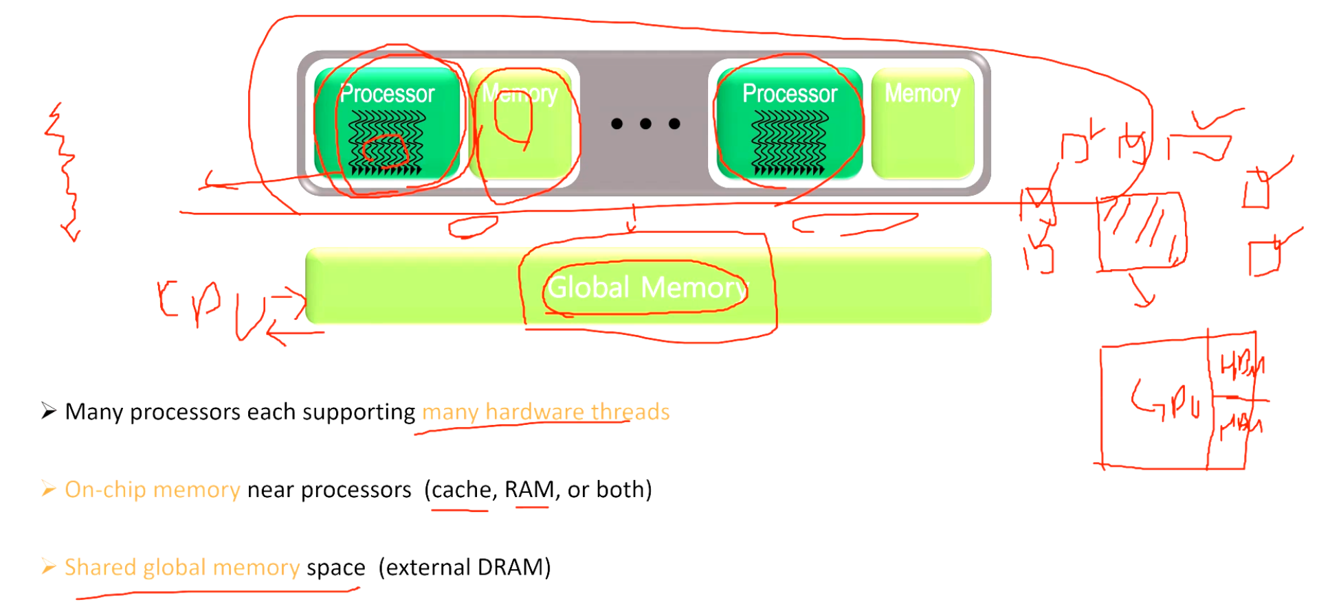 그래서 Parallel하게 처리하는 것이 중요하고 GPU는 CPU보다는 복잡하지않은 단순 연산들을 엄청 많이 할 수 있는 core들을 많이 보유하고 있다. SSD가 빠른 이유도 내부적으로 병렬적으로 처리를 다 하기 때문. 이는 스마트워치, TV 등등 임베디드 장비들도 마찬가지이다.