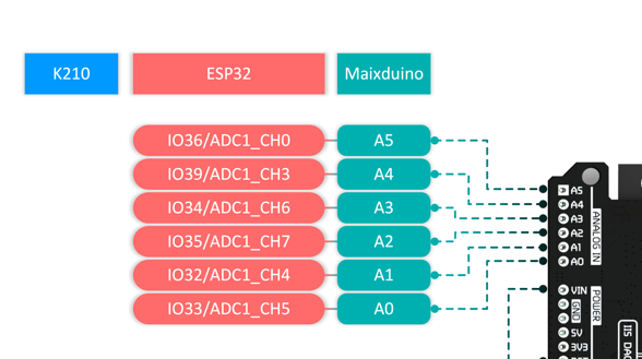 Maixduino는 6channel의 12bit resolution의 ADC가 포함되어있다.