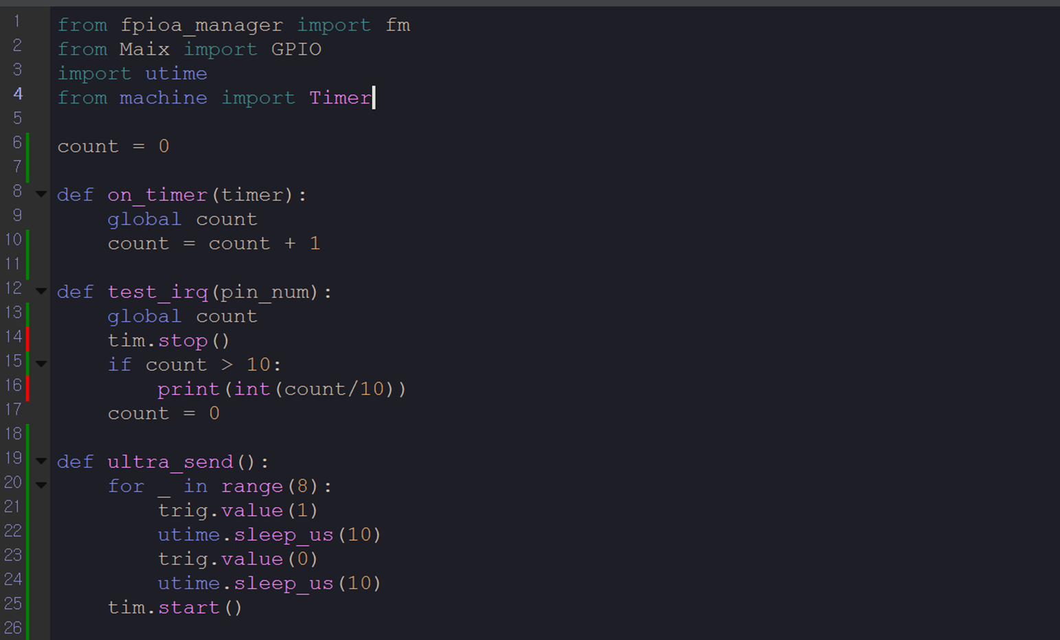 echo.irq함수는 인터럽트함수로서 echo핀의 값이 Falling edge일 때 해당 함수를 불러오는 함수이다.