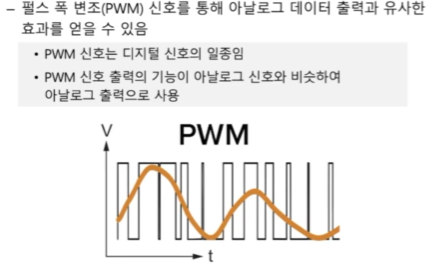 입력도 우리는 analog data를 ADC를 통해 12bit 해상도로 입력받았다. 마찬가지로 출력도 digital로 출력하는데 PWM을 통해 아날로그와 비슷하게 출력하는 것이다.