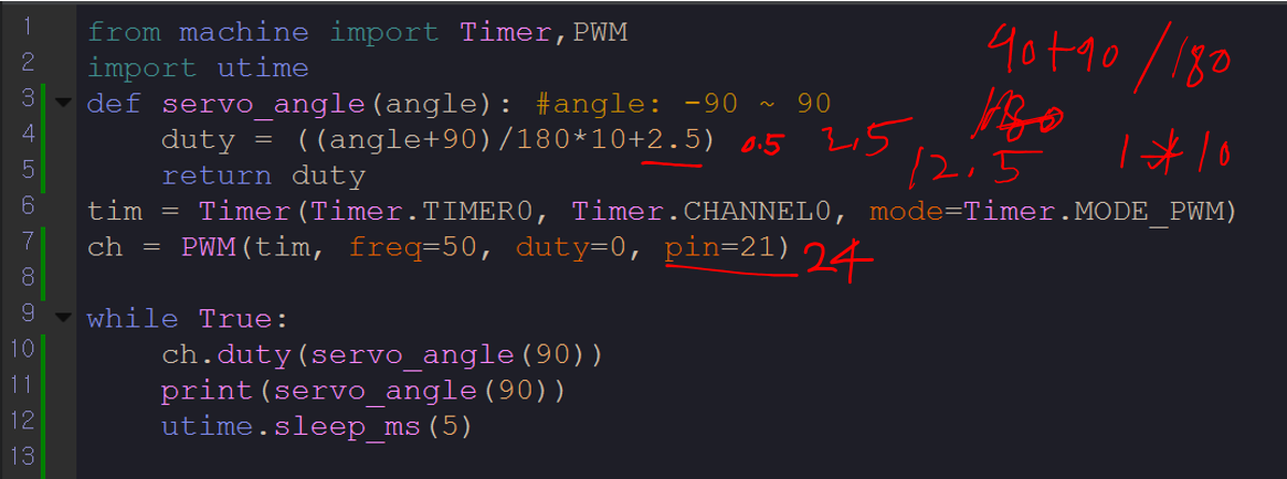 duty에 따라 회전량이 달라진다. 다만 duty - 회전량 표준은 위와 같으나 서보모터마다 회전량은 다를 수 있다.
