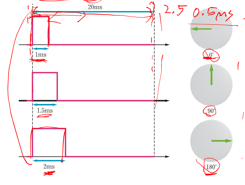 현재 내가 갖고 있는 model은 0.5 ~ 2.5 ms, 즉 2.5duty ~ 12.5duty에 따라서 회전량이 결정된다.