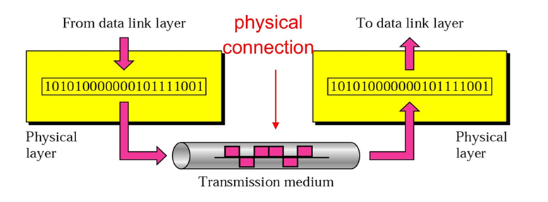 전송의 기본단위는 bit or bit stream이다. 장비는 repeater, hub가 있다.